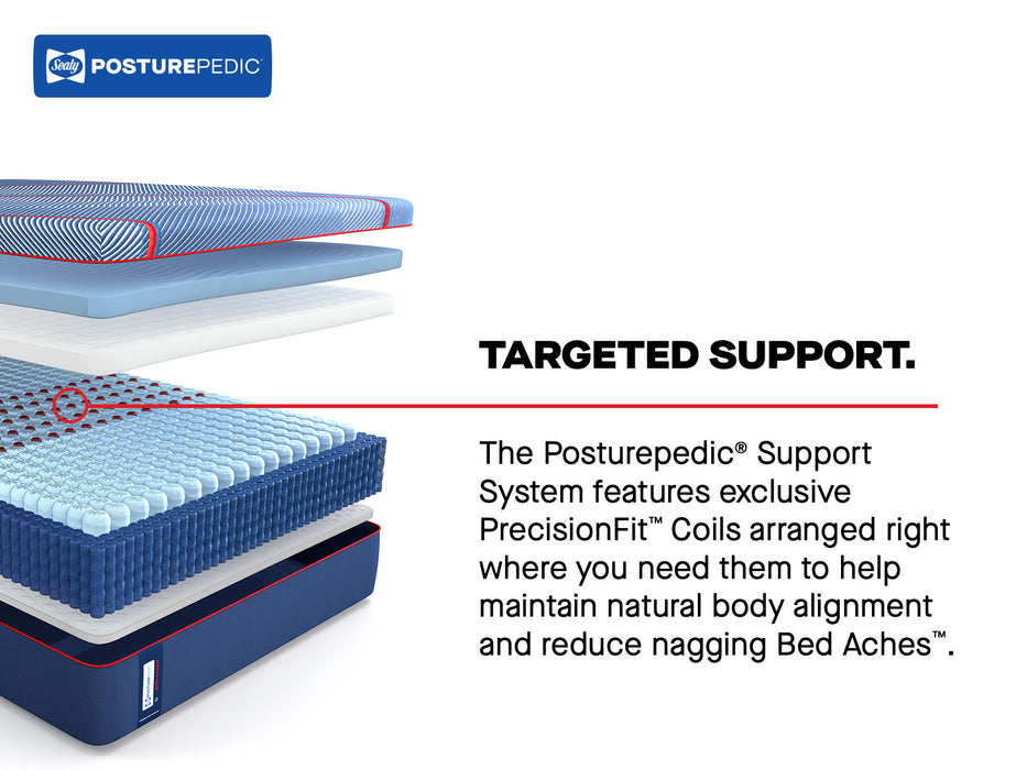 The Sealy Posturepedic® Elite Hybrid Medium Mattress is thoughtfully engineered to deliver a perfect balance of pressure relief, orthopedic support, and cool-to-the-touch comfort. Built with the advanced Posturepedic® Pro Support System, it features PrecisionFit™ Coils and MaxSupport™ Technology to help reduce nagging Bed Aches™ and support your body's natural alignment for years to come.