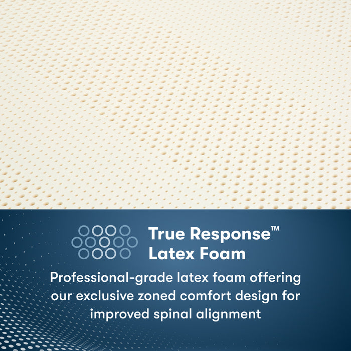The Serta Perfect Sleeper Pro Edinburgh features our exclusive 5 zoned design for improved spinal alignment, made with 100% naturally-derived True Response™ Latex foam and responsive coils, plus an advanced cooling system. Designed for side sleepers, this Level Two Plush Pillow Top mattress provides targeted support and restorative pressure relief with 3" of professional-grade latex foam for consistent, restful sleep every night.